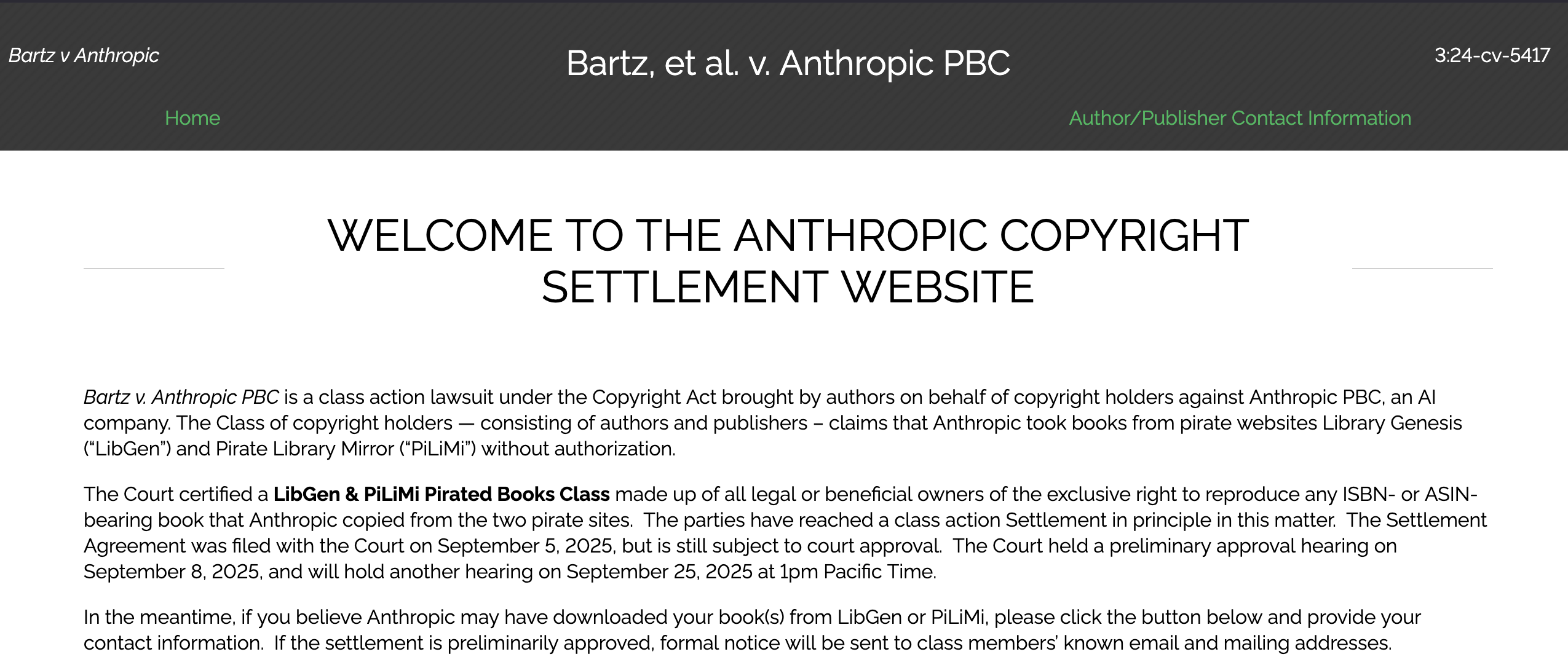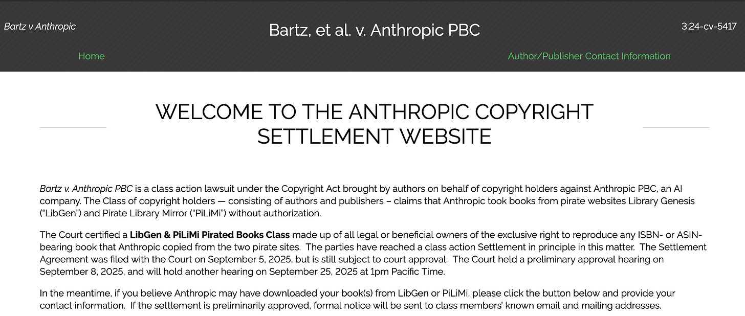 Judge puts Anthropic’s $1.5 billion book piracy settlement on hold, Warner Bros. Joins Studios’ AI Copyright Battle Against Midjourney, Anthropic endorses California’s AI safety bill SB 53