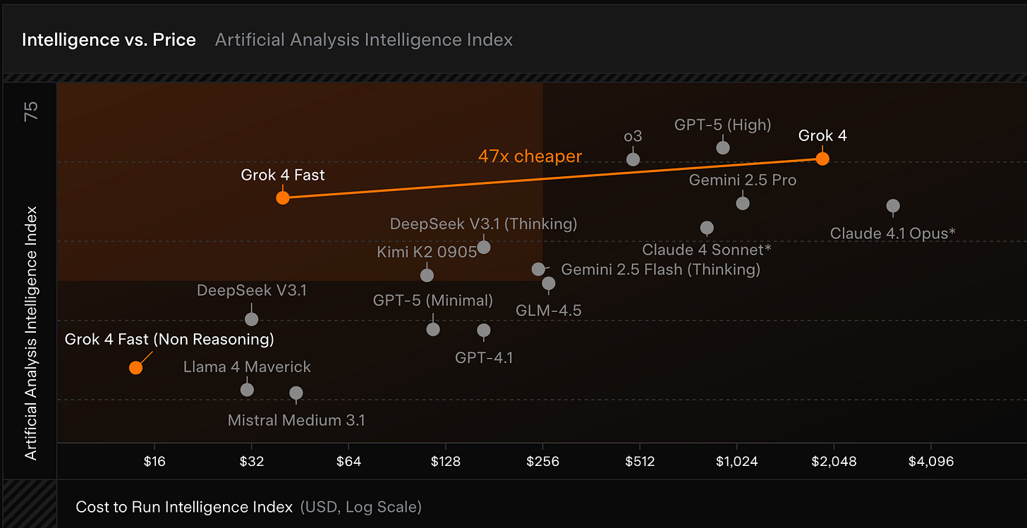 xAI debuts a faster and more cost-effective version of Grok 4. The update reduces computation and cost by using about 40% fewer thinking tokens and a unified reasoning/non-reasoning architecture that xAI says cuts price by 98% while matching Grok 4's benchmark performance and improving speed.