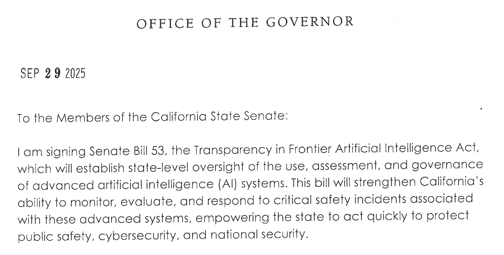 SB 53, the landmark AI transparency bill, is now law in California