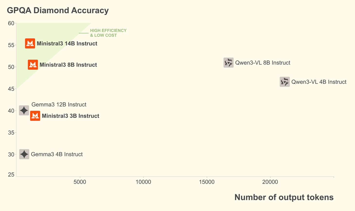 On the deployment front, Ministral 3 targets practicality: all variants support vision, 128k–256k context windows, and multilingual use, and are designed to run offline on a single GPU for on-prem, laptops, edge devices, or robots. Mistral claims the small models can match or outperform larger closed systems after fine-tuning, with higher efficiency and fewer tokens generated for equivalent tasks.