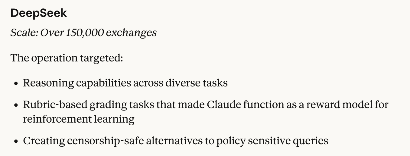 Editor’s Take: The response of the online AI community to this has seemed to largely focus on the ‘funny’ aspect of this (Anthropic trained Claude by distilling the internet, now they oppose their model being distilled, ha). Still, the scale and tactics used here do seem serious enough to merit the label “industrial-scale campaigns”, and other US companies will have to be ready for this as well (in fact Google had already made a similar announcement two weeks ago, which did not garner as much attention as this).